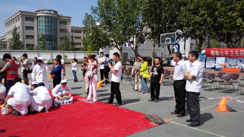 5月16日下午,社区中心及下属各站安全员作为一级医院的代表,参加了海淀区公共卫生日宣传活动暨反恐处突事件应急救援演练。应急演练在海淀区卫生学校举行。此次应急演练模拟了一起校内突发恐怖袭击事件,导致几十名学生受伤。各医院救护人员在海淀区卫生局的协调下紧急奔赴现场,开展对伤员的救治工作,送至模拟北医三院急诊室,对伤员进行进一步处理。