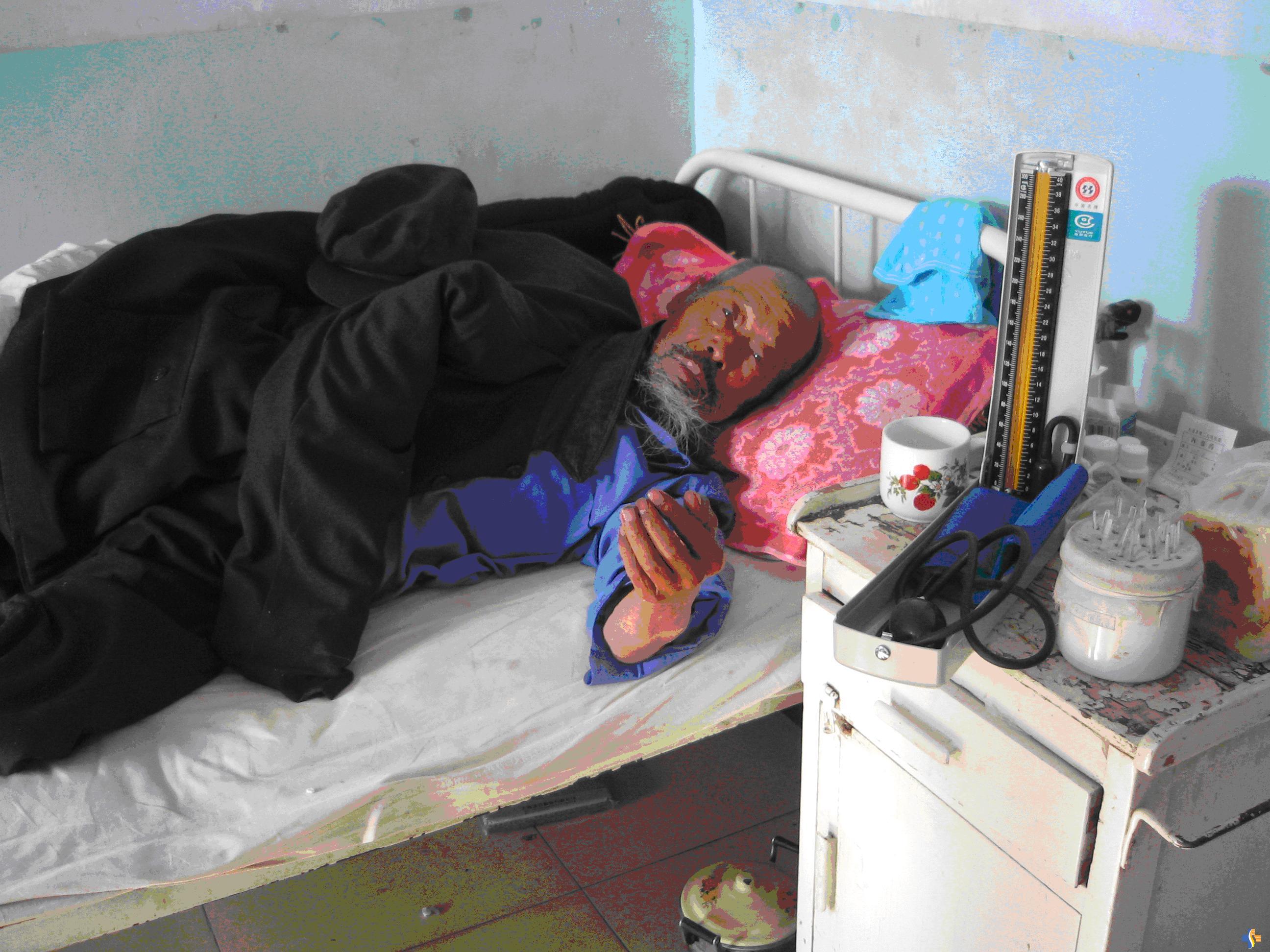 当地一个普通的农民家庭,一亩地的收入不到300元钱,一个4口之家一年的收入人均不到1000元。中青年人承担着生活的重压。长年的风吹日晒、放牧耕地使他们看上去都比实际年龄要苍老很多,30多岁的人却象40、50岁的人,皮肤黝黑,满脸皱纹,伸出手指甲里全是泥土,手上满是冻疮裂口,衣衫破旧。一个被诊断为肺结核,右肺满罐胸水的男病人,直到喘个不停时才放下农活被送到医院,大冷的天却只空心穿一件破烂的棉袄,棉袄上满是油渍和污迹,头发里满是麦秸和尘土。他的妻子穿着一件淡薄的夹袄,在寒风中瑟瑟发抖,此情此景让人动容,我立即脱下了身上的羽绒服又取了两件毛衣送给了她,她感激的接过衣服,一个劲地说着谢谢、谢谢,我却为能给予他们的太少而内疚。