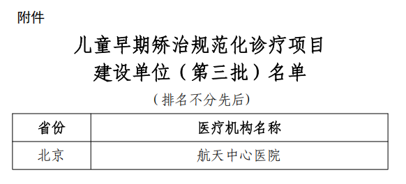 近日,国家卫生健康委医院管理研究所公布了儿童早期矫治规范化诊疗项目建设单位名单(第三批),航天中心医院成功入选。