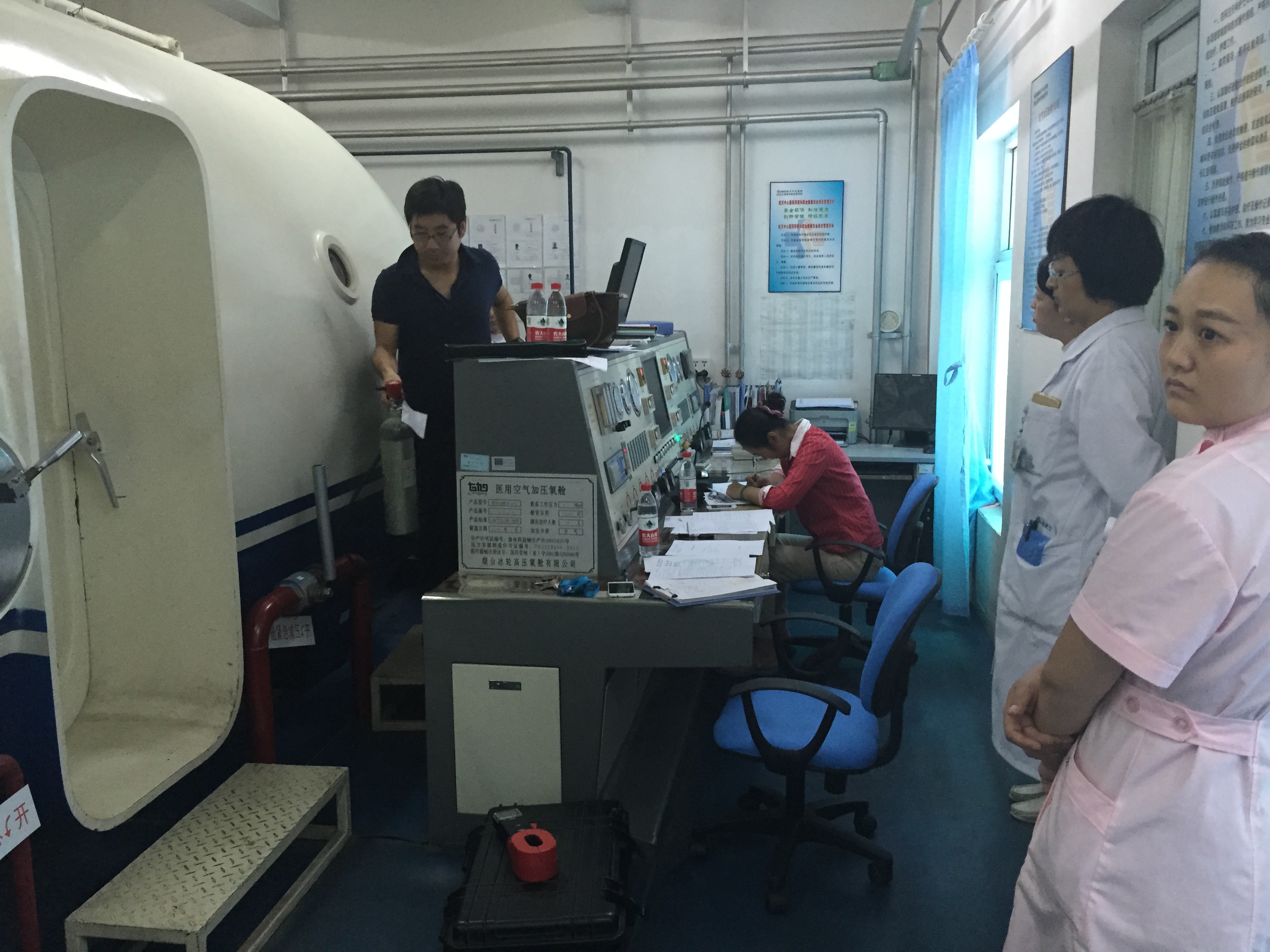 8月26日,北京市质量监督局的张老师,彭老师来到我院高压氧科,对我院高压氧舱进行现场安全检查。两位老师主要检查了氧舱设备是否在安全期之内,操舱人员是否持证上岗,以及各种相关制度的落实情况。两位老师还参与了舱内水喷淋和紧急减压两项演练。两位老师重点提出要吸取“8•12”瑞海公司危险品仓库特别重大火灾爆炸事故的教训,严格落实安全进舱制度,消除安全隐患,保证氧舱的正常运行。