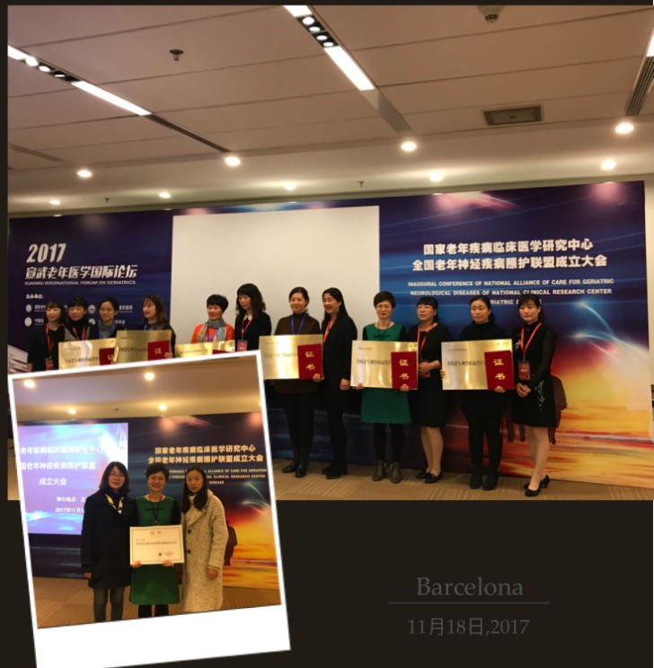 11月18日,在全国老年神经疾病照护联盟揭牌仪式上,神经内科成为首批全国老年神经疾病照护联盟成员单位,苗凤茹护士长应邀出席此次接牌仪式。