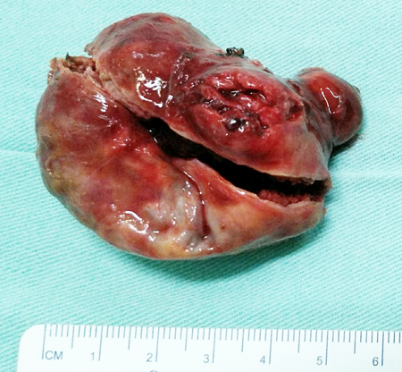 患者是一位六十多岁男性,送至我院时已深度昏迷,右侧瞳孔散大,血压高达180mmHg,外院的头颅CT显示右侧基底节区脑出血和蛛网膜下腔出血,血肿内部似乎还有一个团块样高密度影,不排除动脉瘤破裂的可能。由于患者已发生脑疝,呼吸困难,随时有可能呼吸停止,来不及再做脑血管的进一步检查了,必须尽快手术抢救生命。